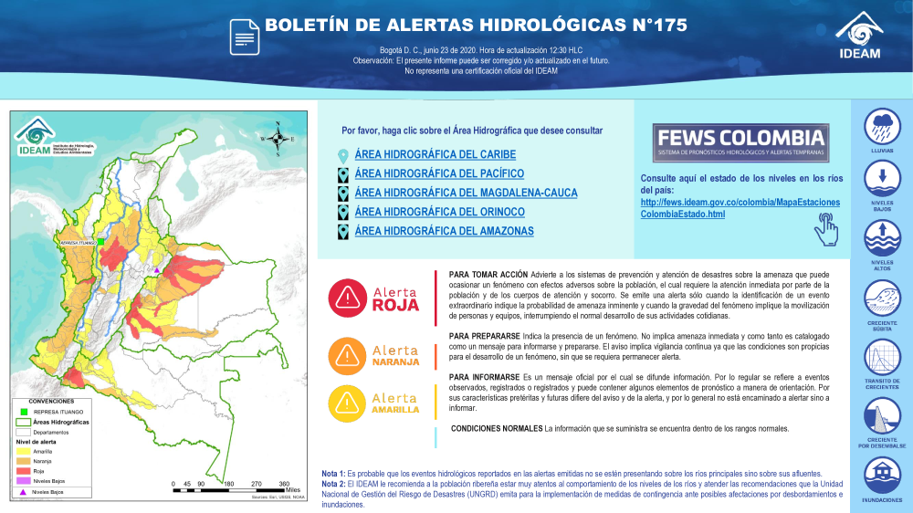 En general, el seguimiento que hace el Ideam del comportamiento hidrológico en los principales ríos del país se realiza con la información horaria en tiempo real que se recibe de las estaciones automáticas, complementadas con más de 40 estaciones hidrológicas que transmiten en las primeras horas cada mañana, los 365 días del año.