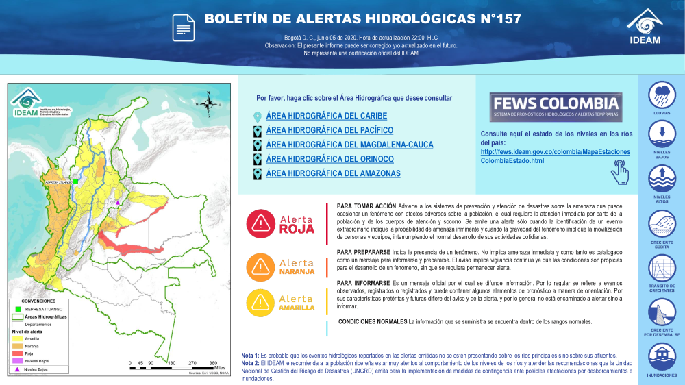 En general, el seguimiento que hace el Ideam del comportamiento hidrológico en los principales ríos del país se realiza con la información horaria en tiempo real que se recibe de las estaciones automáticas, complementadas con más de 40 estaciones hidrológicas que transmiten en las primeras horas cada mañana, los 365 días del año.