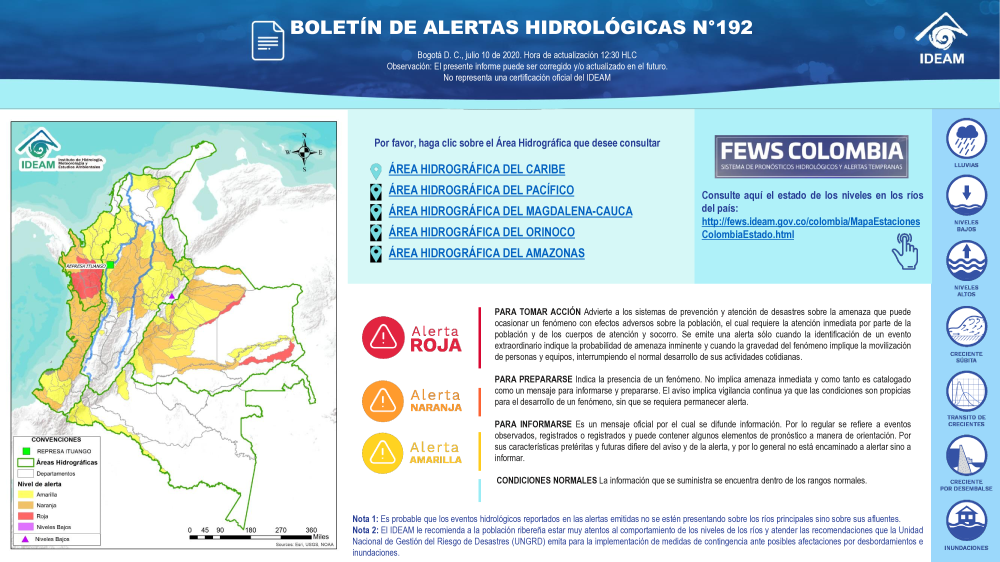 En general, el seguimiento que hace el Ideam del comportamiento hidrológico en los principales ríos del país se realiza con la información horaria en tiempo real que se recibe de las estaciones automáticas, complementadas con más de 40 estaciones hidrológicas que transmiten en las primeras horas cada mañana, los 365 días del año.