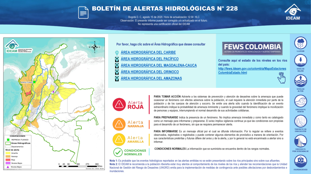 En general, el seguimiento que hace el Ideam del comportamiento hidrológico en los principales ríos del país se realiza con la información horaria en tiempo real que se recibe de las estaciones automáticas, complementadas con más de 40 estaciones hidrológicas que transmiten en las primeras horas cada mañana, los 365 días del año.