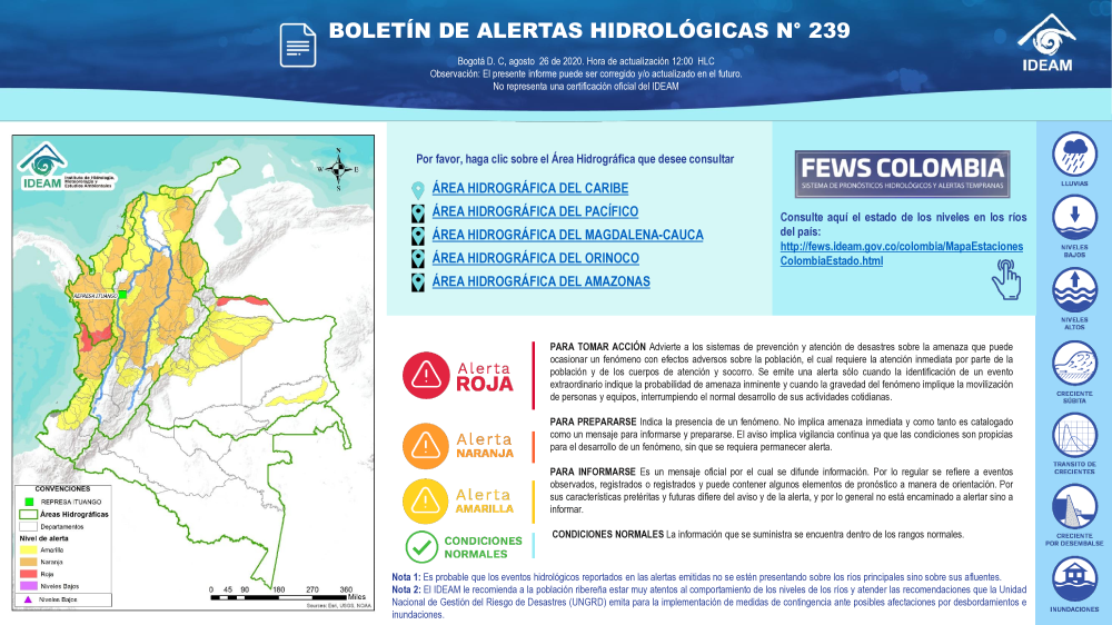 En general, el seguimiento que hace el Ideam del comportamiento hidrológico en los principales ríos del país se realiza con la información horaria en tiempo real que se recibe de las estaciones automáticas, complementadas con más de 40 estaciones hidrológicas que transmiten en las primeras horas cada mañana, los 365 días del año.