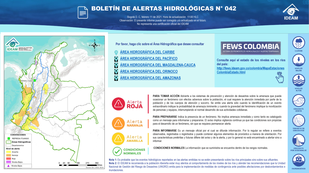 En general, el seguimiento que hace el Ideam del comportamiento hidrológico en los principales ríos del país se realiza con la información horaria en tiempo real que se recibe de las estaciones automáticas, complementadas con más de 40 estaciones hidrológicas que transmiten en las primeras horas cada mañana, los 365 días del año.