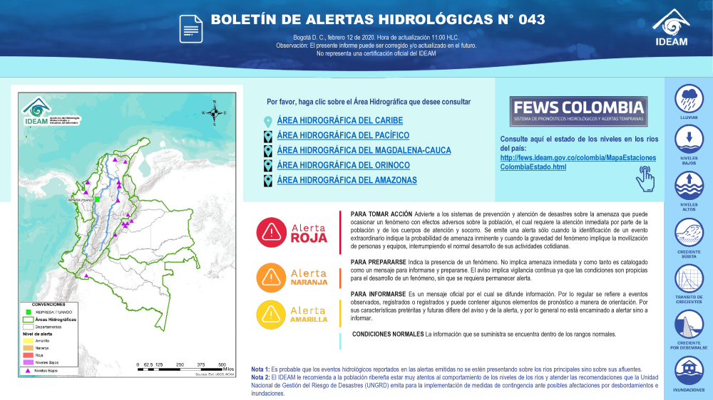 En general, el seguimiento que hace el Ideam del comportamiento hidrológico en los principales ríos del país se realiza con la información horaria en tiempo real que se recibe de las estaciones automáticas, complementadas con más de 40 estaciones hidrológicas que transmiten en las primeras horas cada mañana, los 365 días del año.