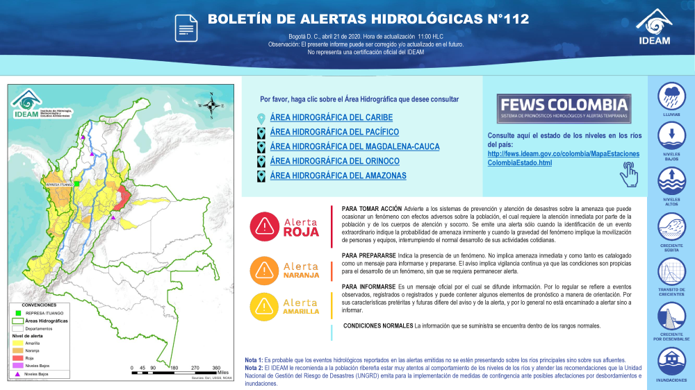 En general, el seguimiento que hace el Ideam del comportamiento hidrológico en los principales ríos del país se realiza con la información horaria en tiempo real que se recibe de las estaciones automáticas, complementadas con más de 40 estaciones hidrológicas que transmiten en las primeras horas cada mañana, los 365 días del año.